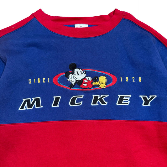 1990s Mickey Mouse Red & Blue Colorblock Crewneck Sweater