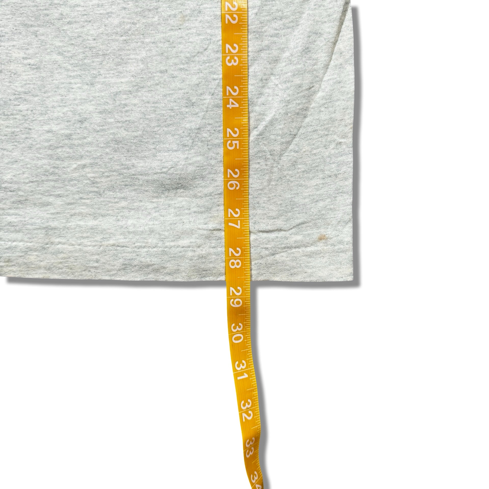 This vintage tee makes a bold statement with a colorful “Back Off!” graphic featuring classic Looney Tunes characters Tweety, Sylvester, Daffy, and Taz. The design pops against the soft heather gray cotton, delivering both cartoon fun and nostalgic 90s energy. A great collectible for animation fans.