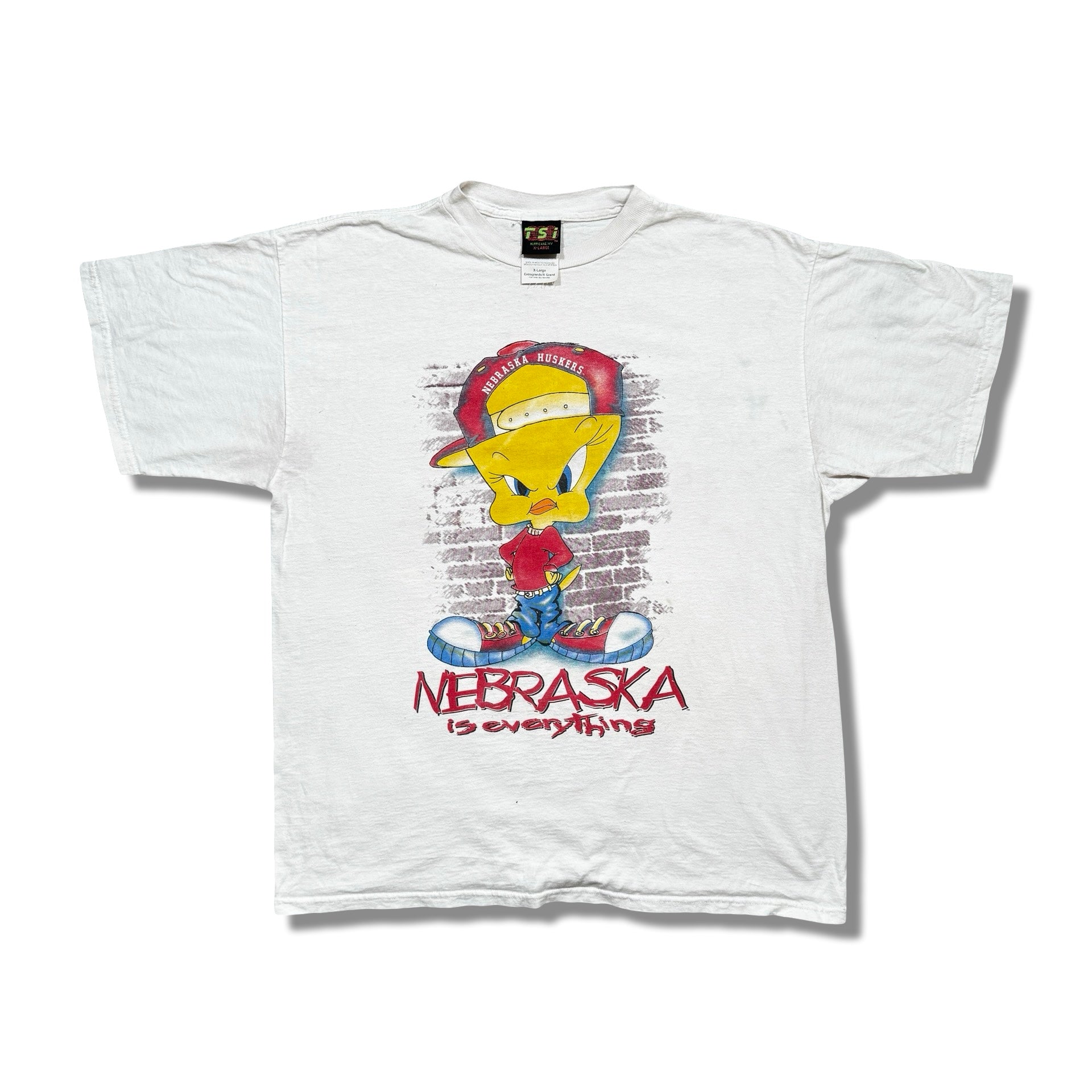 1990s Tweety Bird Nebraska Huskers White Graphic T-Shirt